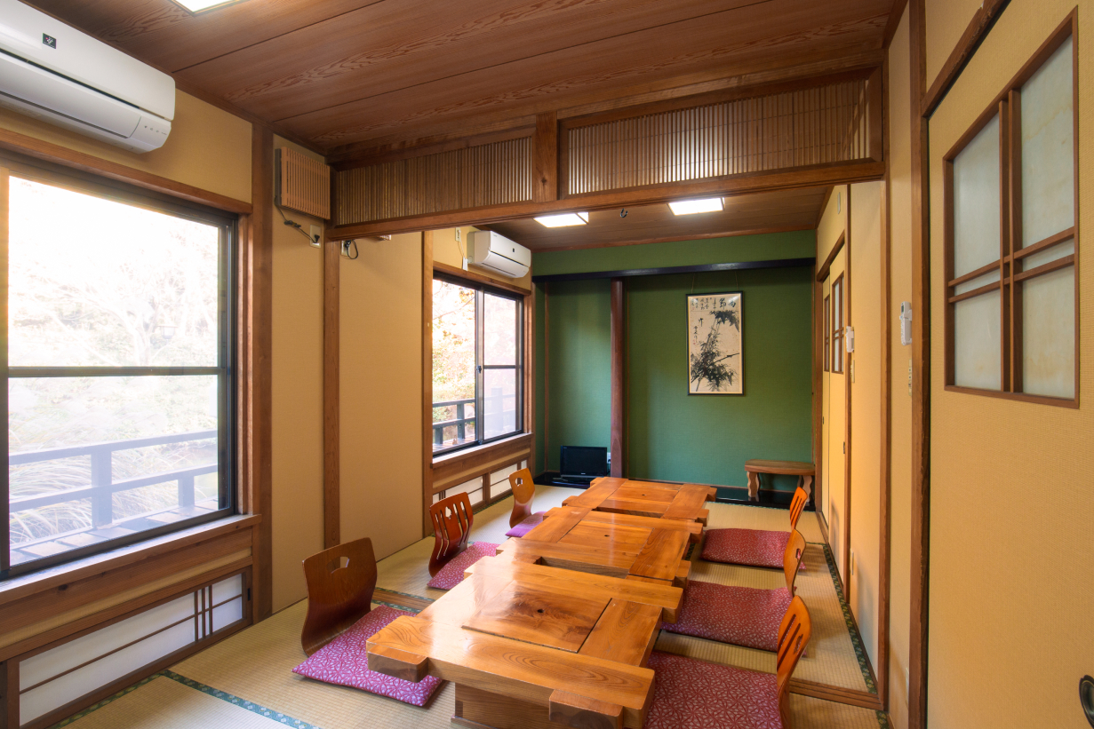 お食事は全室個室のお食事処で、熊本・南阿蘇の素材を使ったお料理の数々をご堪能いただけます。団体でお泊まりのお客様には宴会場もご用意しております。ご利用の際はお気軽にご相談くださいませ。