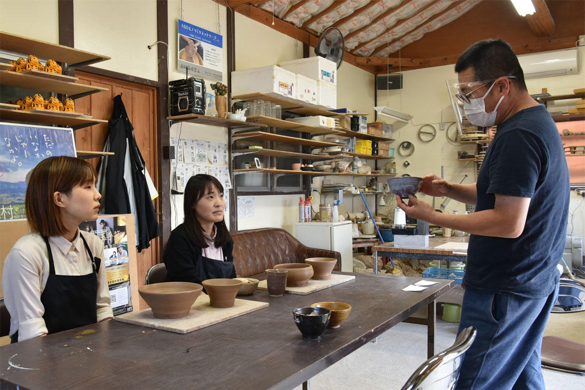 阿蘇山からの恵みの材料を使った作品づくりを行う南阿蘇焼窯元。溶岩や火山灰を生かした、美しい窯変美が特徴です。5棟の工房で陶芸体験はもちろん、作品展示なども楽しめます。自分で作った器は、思い入れもあり宝物に。不恰好さも含めて愛おしい暮らしのアイテムになりそうです。