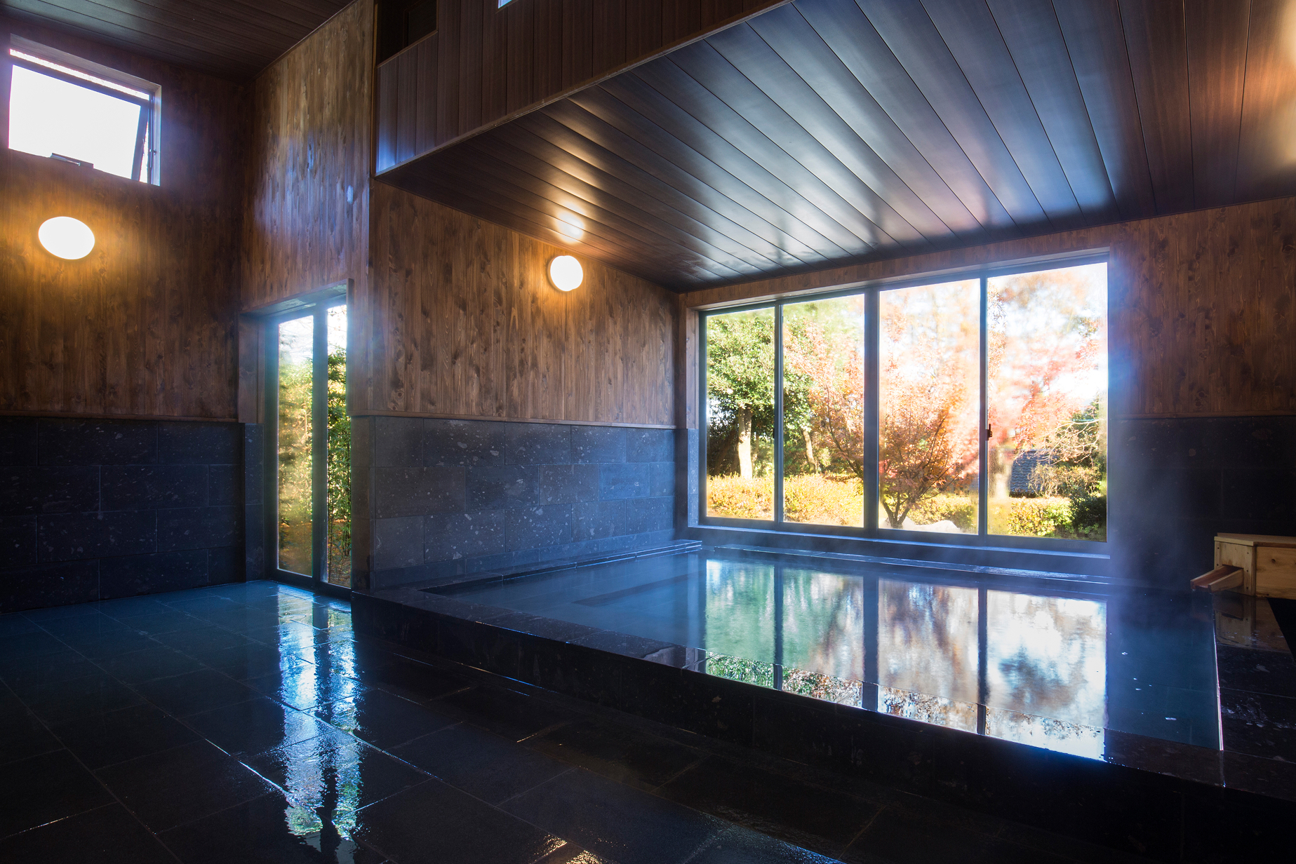 広々と開放感あふれる石づくりの落ち着いた大浴場。窓の外に広がる、自然の美しさを堪能しながら湯に浸かる、贅沢なひとときを。